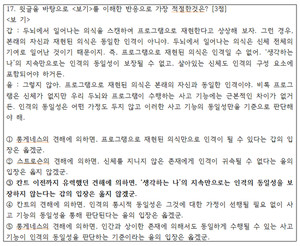 2026학년도 대학수학능력시험이 끝나고 난 이후 역시 올해에도 몇몇 수능 문제의 정답에 대한 당위성 논쟁이 뜨겁습니다.수능점수가 입시생들에게는 절대적인 평가점수로 작용할 수 밖에 없는 현 입시제도하에서, 한 문제가 맞고 틀리는, 특히 배점이 3점~4점으로 높은 경우에는 그 문제의 정답 결과로 인해 한 학생의 진로가 달라질 수 있을 정도로 중요하기 때문에 출제 문제와 정답의 명확성은 너무나도 중요합니다.올해 수능에서 가장 뜨거운 논쟁을 불러일으키고 있는 것은 국어 17번 문항(3점)인 것으로 보입니다. 여러 사람들이 문제 오류를 지적